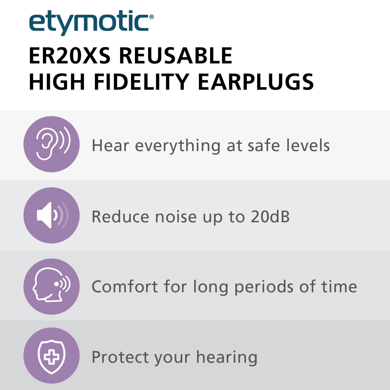 ER20XS High Fidelity Earplugs The ER20XS is the next generation high fidelity Etyplug, reengineered to fit in an eXtra small compact form factor.