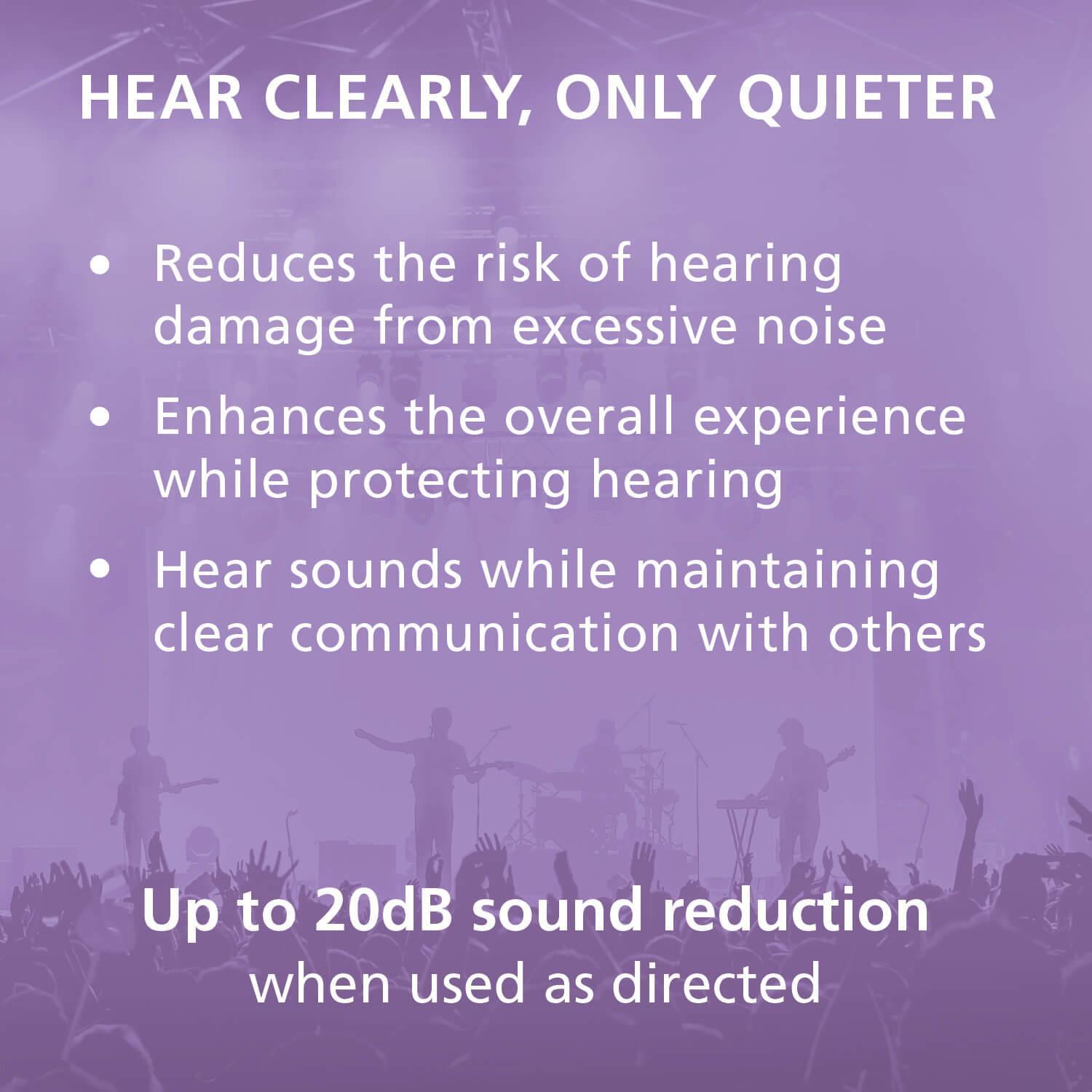 The ER20XS is a great choice for those who wants to protect their hearing from loud sounds, while at the same time continue hearing surrounding music, speech, and other meaningful signals:
