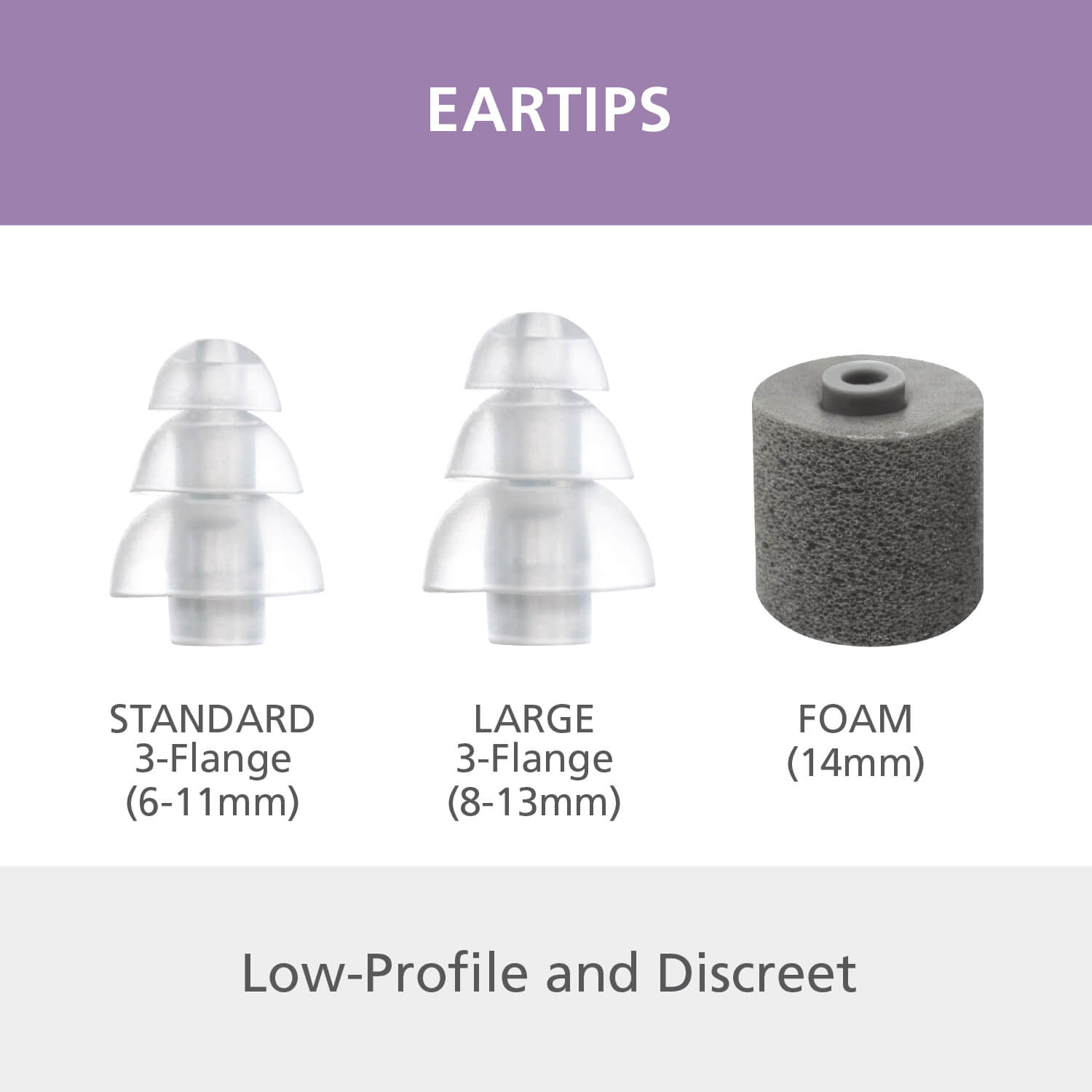 ER20XS Earplugs are reusable, low-profile, with a stem-less design that sits snugly in the outer ear without protruding. This makes it discreet and comfortable to wear under hats, helmets and other headgear.