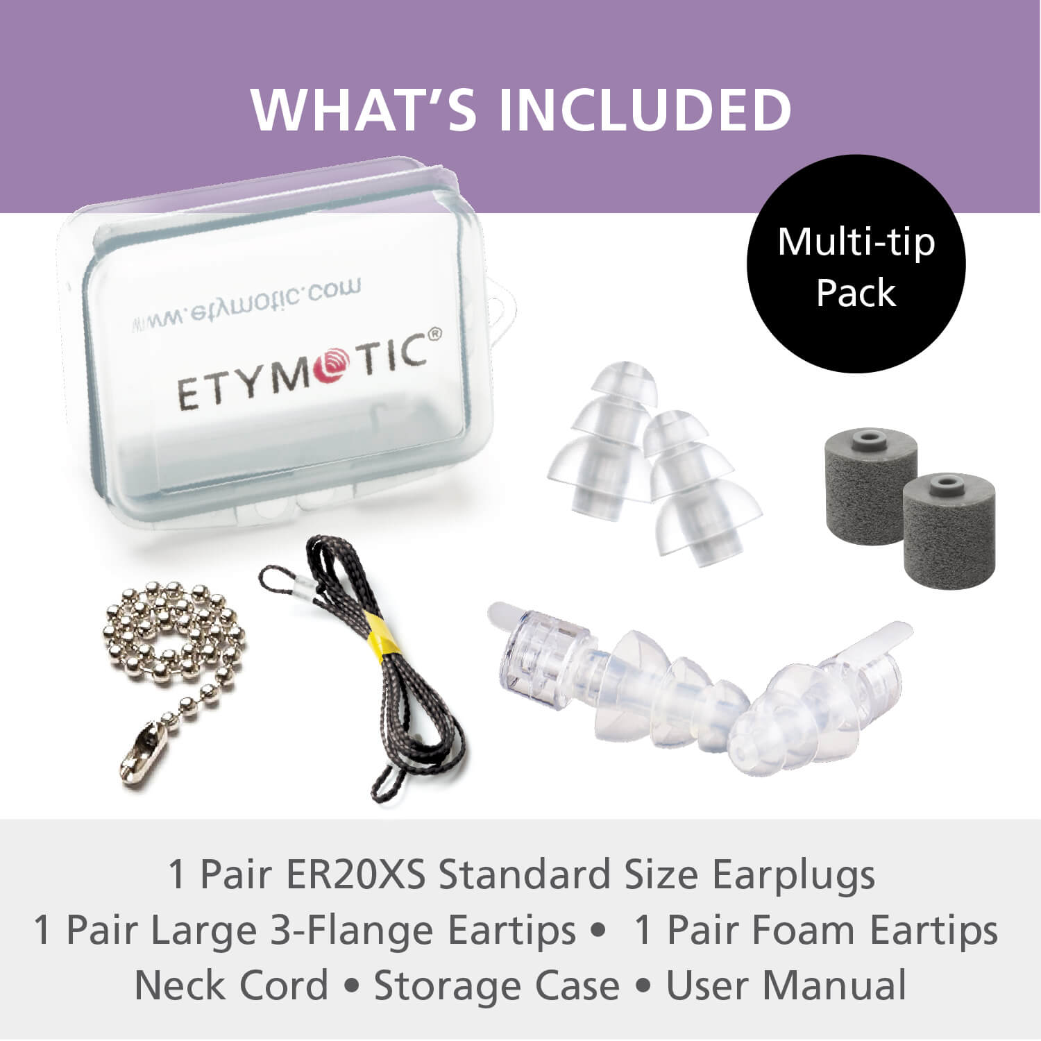 ER20XS come with a small, flexible pull tab that allows for easy removal, an easy-to-install neck cord and a carrying case.