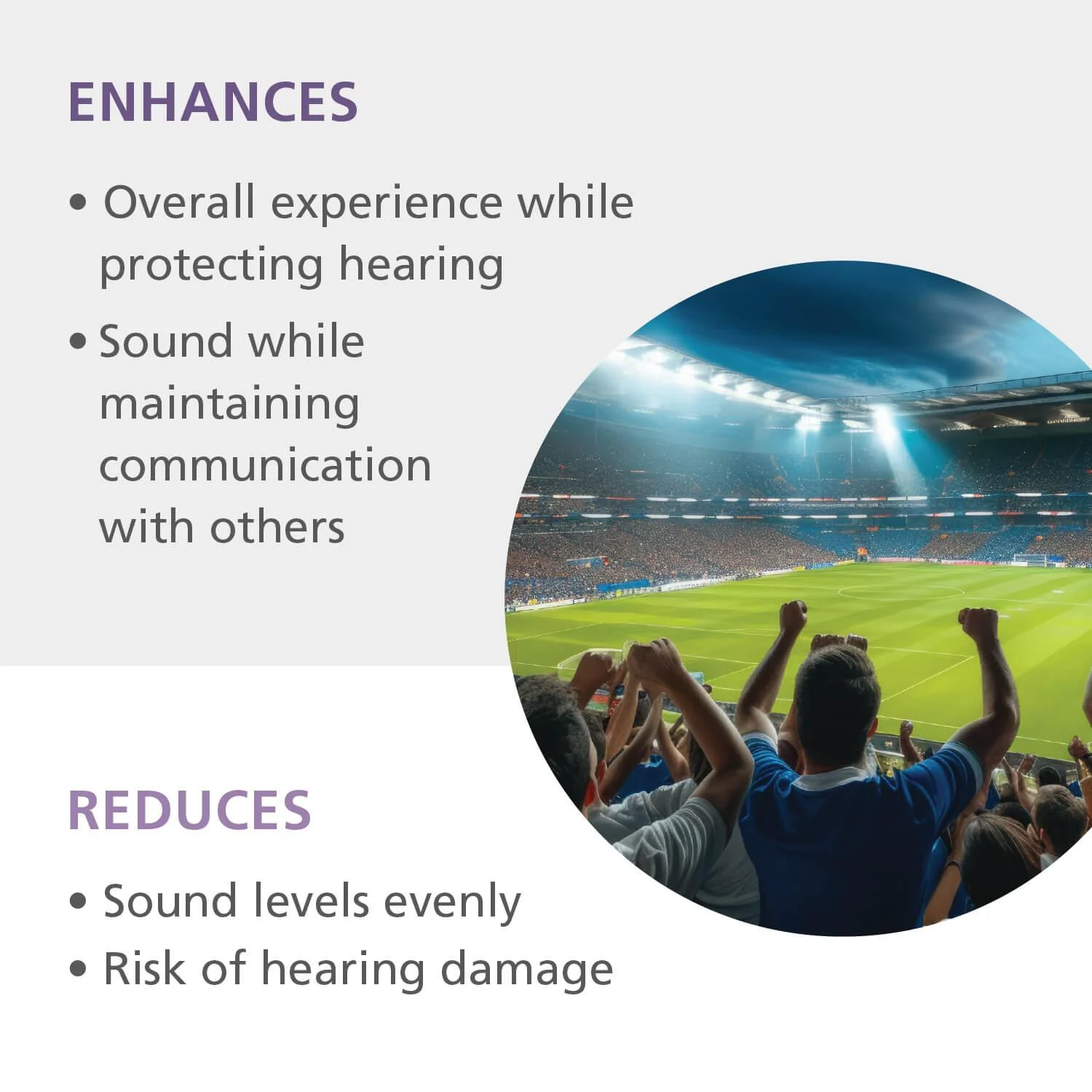 · Reduce risk of hearing damage for many noisy occupations as well as noisy venues, such as airshows, parades, athletic events and motor sports.